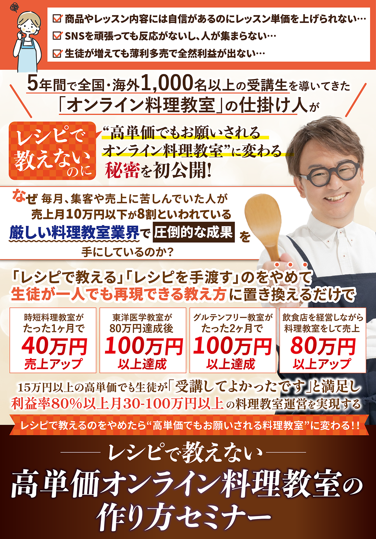 “レシピで教えない”という新しい形で、全国・海外から受講生が集まり、月商100万円を連発。
